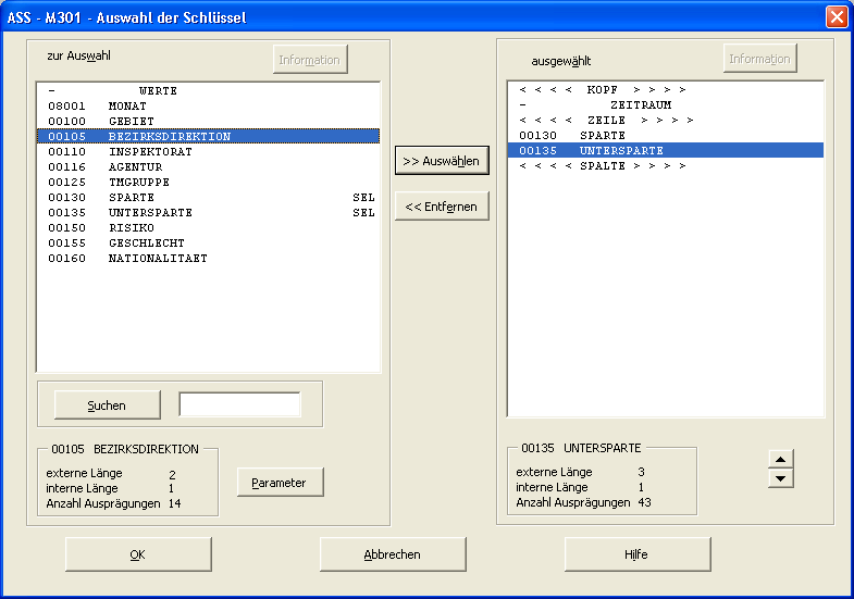 in den Auswahlmasken gemacht. Im Gegensatz zu Anforderungs-