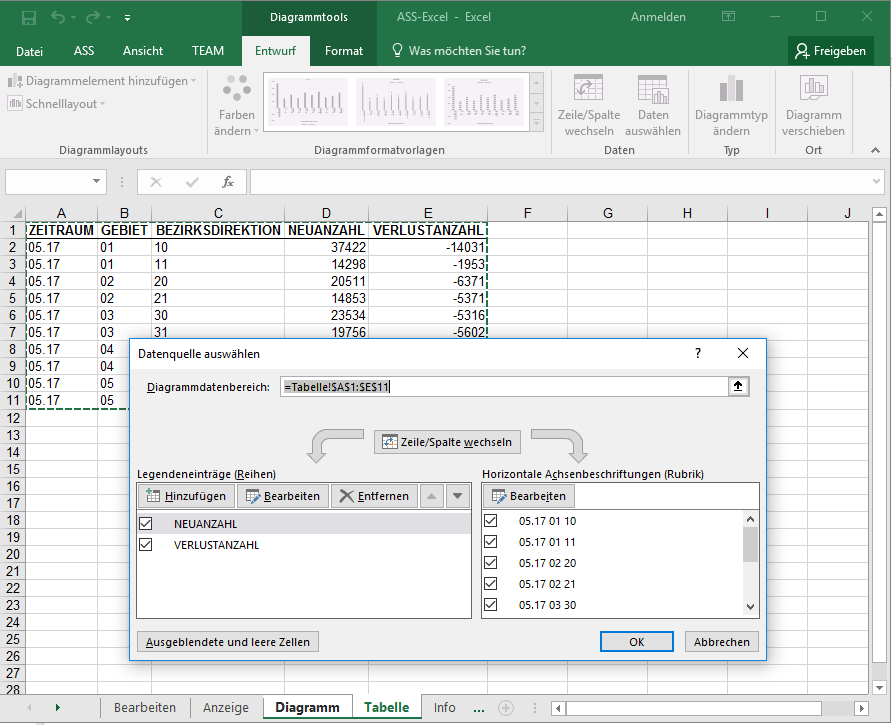 Ein Anwender kann mehrere ASS-Excel-Task parallel benutzen. So kann beispielsweise im ersten Task eine Anforderung zusammengebaut werden, während ein zweiter Task damit beschäftigt ist, die Zahlen einer anderen Statistik zu berechnen. Am besten wird nach dem Hochfahren einer zweiten Excel-Oberfläche die ASS-Excel-Startroutine ausgeführt. Sie kann über Menü Datei --> Öffnen aus dem Verzeichnis ASS-PGM gestartet werden. Standardmäßig heißt diese Startroutine ST31sta.XLS , gegebenenfalls ist aber der Name beim ASS-PC-Systembetreuer zu erfragen.