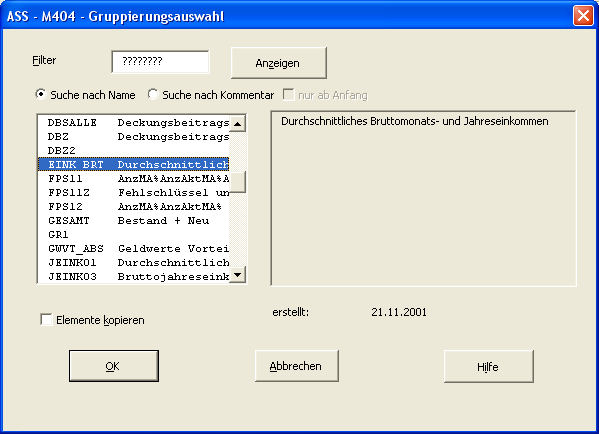Die Begriffe WERTE und ZEITRAUM werden in manchen ASS-Handbüchern auch als Pseudoschlüssel bezeichnet.