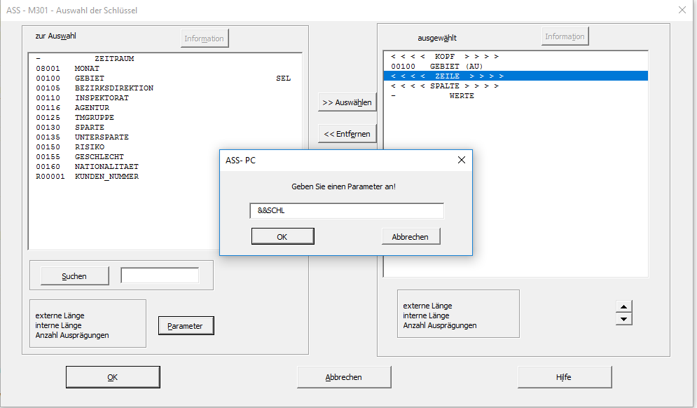 Die Begriffe WERTE und ZEITRAUM werden in manchen ASS-Handbüchern auch als Pseudoschlüssel bezeichnet.
